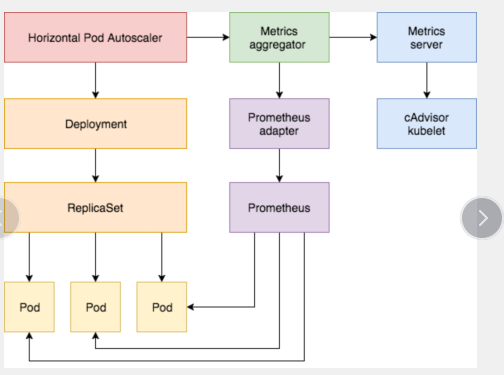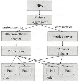 HPA(v2)支持从metrics-server中请求核心指标;从k8s-prometheus-adapter一类自定义API中获取自定义指标数据