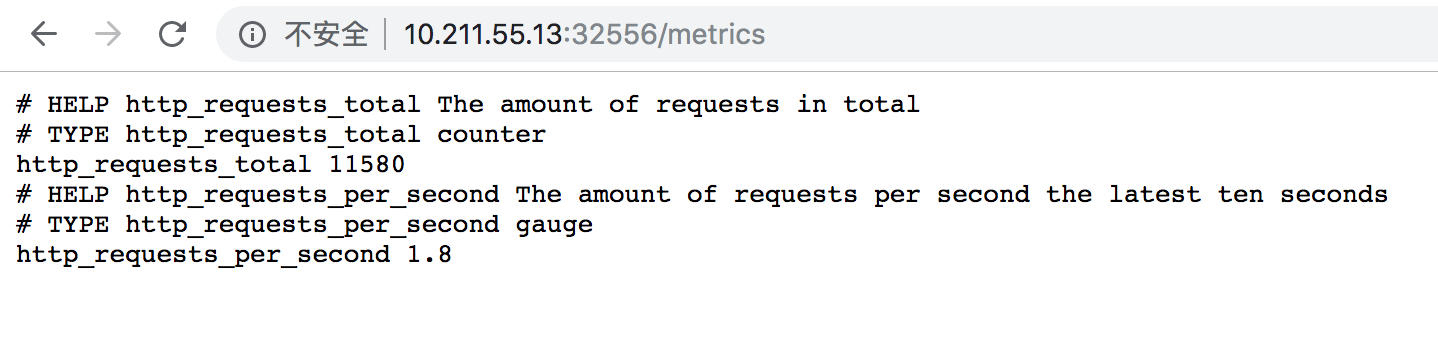 1.ikubernetes/metrics-app 运行时会通过 /metrics路径输出 http_requests_total 和 http_requests_per_second 两个指标