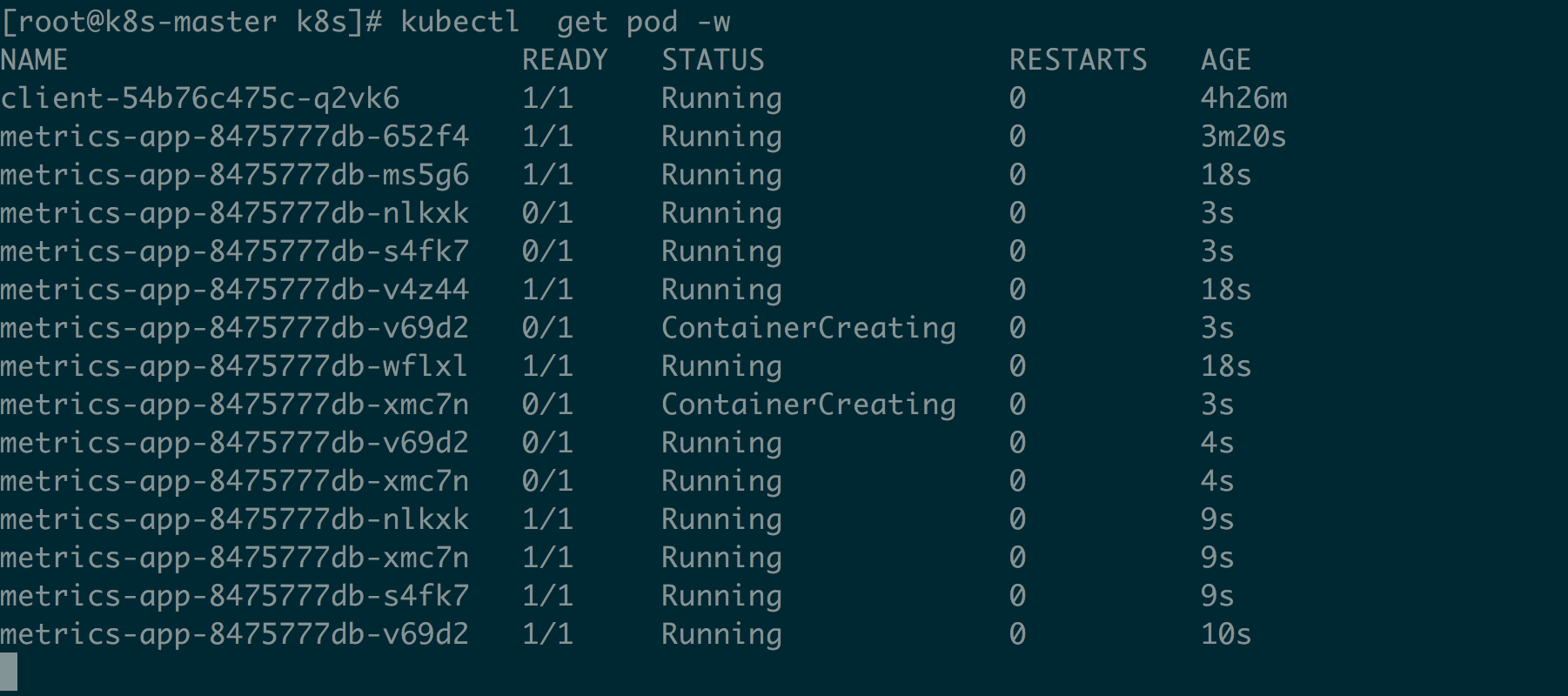 HPA Controller会通过调整副本数量使得CPU使用率尽量向期望值靠近,而且不是完全相等.另外,官方考虑到自动扩展的决策可能需要一段时间才会生效:例如当pod所需要的CPU负荷过大,从而在创建一个新pod的过程中,系统的CPU使用量可能会同样在有一个攀升的过程。所以,在每一次作出决策后的一段时间内,将不再进行扩展决策。对于扩容而言,这个时间段为3分钟,缩容为5分钟(可以通过--horizontal-pod-autoscaler-downscale-delay, --horizontal-pod-autoscaler-upscale-delay进行调整)。