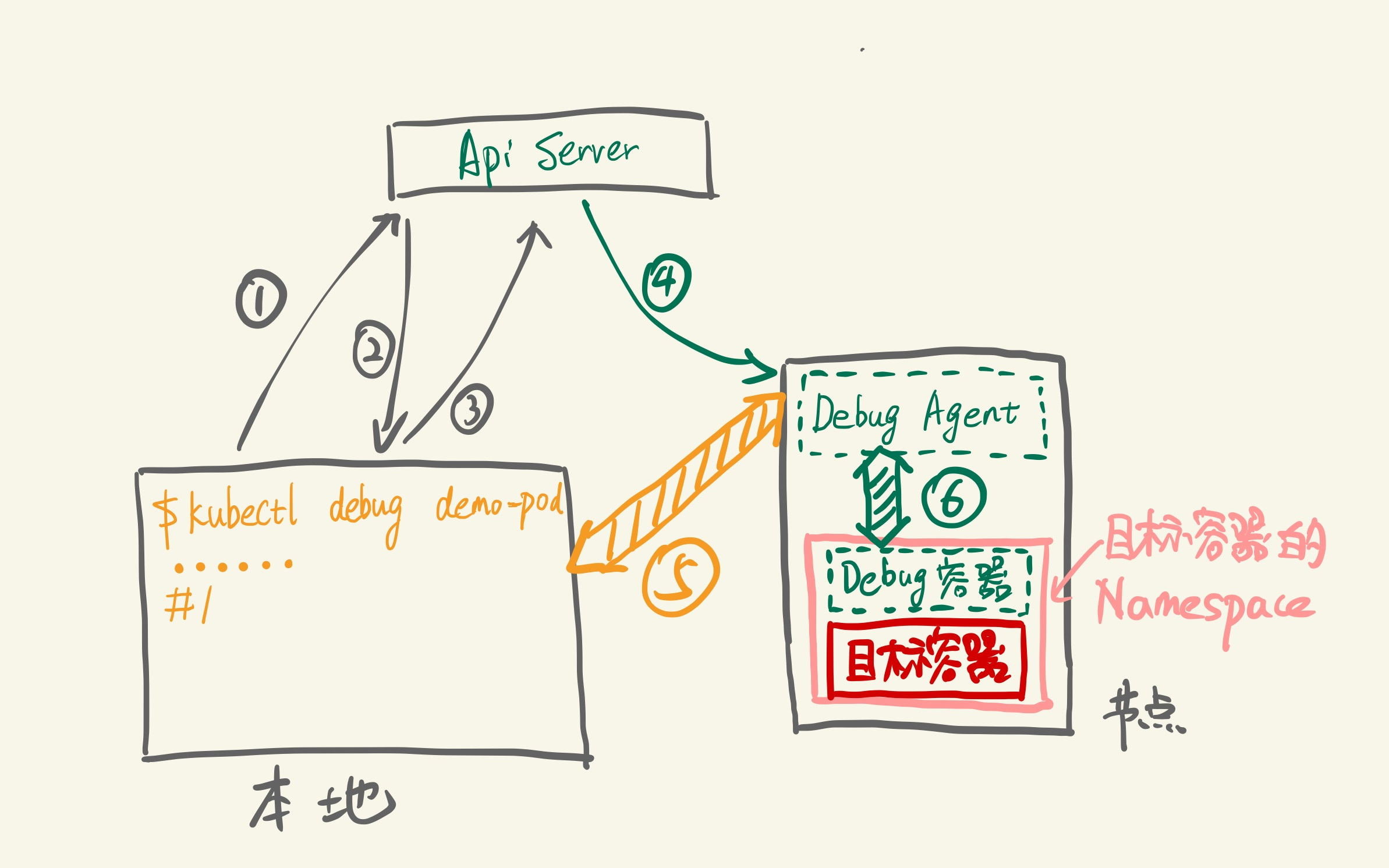 具体到实现上,一条 kubectl debug <target-pod> 命令背后是这样的: