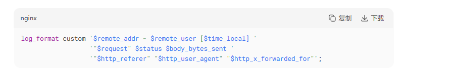 例如,Nginx 自定义日志格式: