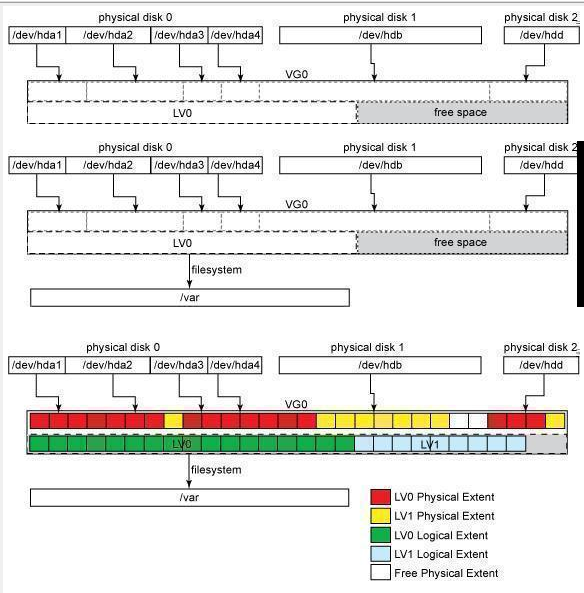 2. vgextent vg_name /dev/hdb8 (扩大)