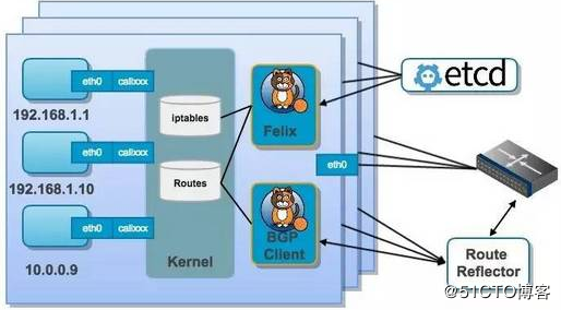 在Calico中,此BGP组件也是使用的最常见的BIRD,配置为Route Reflector运行,而不是标准BGP客户端。