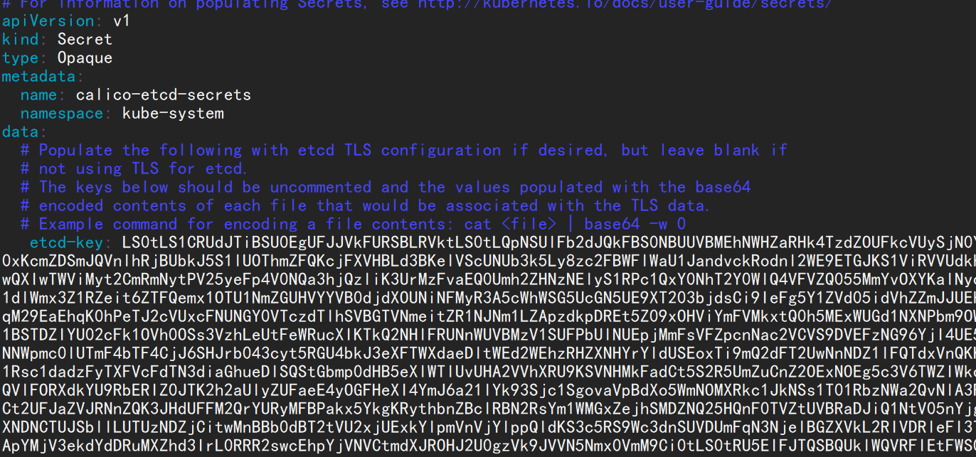 etcd-key: (cat /opt/kubernetes/ssl/server-key.pem | base64 -w 0) # 将输出结果填写在这里
