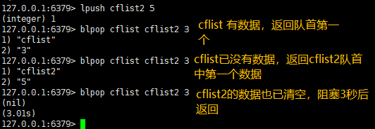 关于blpop多个key返回数据的顺序,比如blpop cflist cflist2 3这个命令,先检查cflist有数据就返回,如果没有数据,就检查cflist2依次。。。。直到所有key检查完如果都没有数据就阻塞。