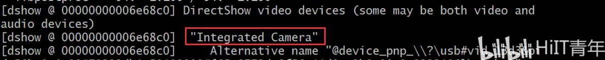 FFmpegFrameGrabber采集摄像头数据需要指定输入,如:video=Integrated Camera,这里Integrated Camera是摄像头的设备名。