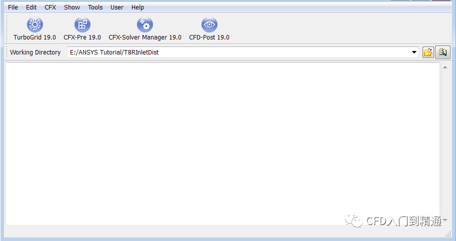 打开ANSYSCFX仿真软件,将文件TBRInletDistStator.gtm,TBRInletDistOutlet.csv,TBRInletDistCEL.ccl拷贝至英文文件目录下,更改Working Directory路径至网格文件目录下。