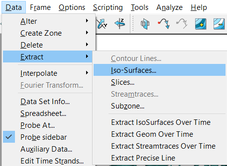 4. 要在等值面上显示速度云图,我想应该首先把涡量等值面给提取出来,单独作为一个Zone(在这个Zone上显示速度云图)。