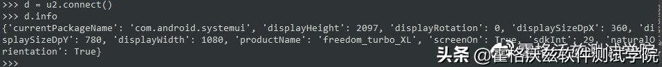 说明:后文中所有代码都需要导入 uiautomator2 库,为了简化我使用 u2 代替,d 代表 driver