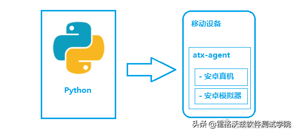 如图所示,python-uiautomator2 主要分为两个部分,python 客户端,移动设备