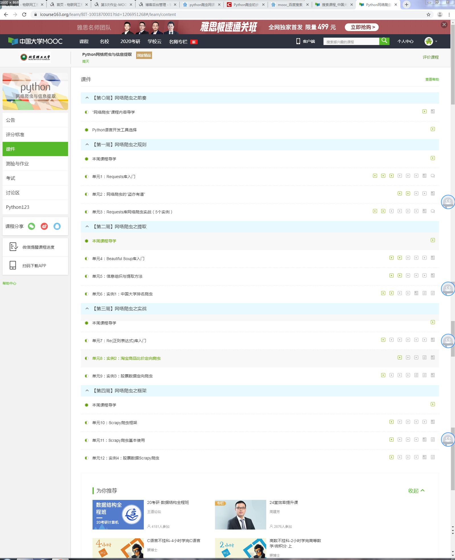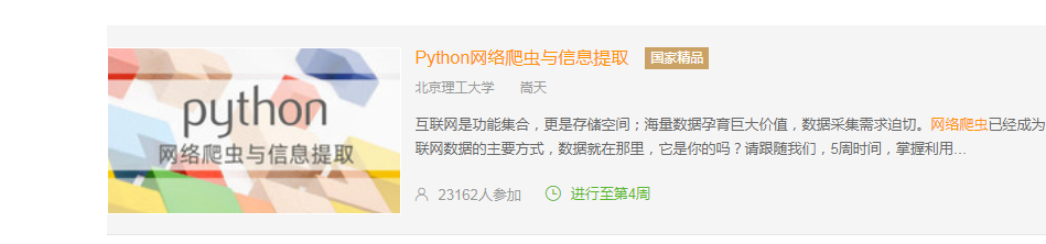 2.选择北京理工大学嵩天老师的《Python网络爬虫与信息提取》MOOC课程