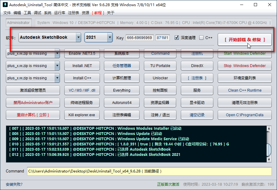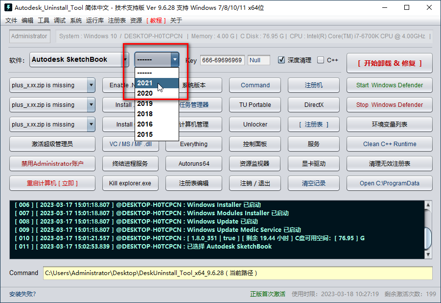现在虽然一些卸载软件提供了强力卸载清理sketchbook的工具,可以将sketchbook注册表和一些sketchbook目录的残留信息删除干净,但仍不能确保将sketchbook所有相关dll程序文件、exe可执行文件和注册表信息全部彻底删除干净。网上关于如何解决sketchbook安装失败的一些文章,是说删除几个sketchbook文件和软件注册表就可以解决sketchbook安装失败的问题,实际的情况并没有这么简单。导致sketchbook安装失败的原因有很多,sketchbook安装时产生了几千条注册表,也就是说,想要彻底卸载sketchbook软件再重新安装就有几千条sketchbook注册表要删除,一般情况下理论上,是可以手动一条条删除的,但在这里我们可以借助一个小工具从而节省时间,下面我来教大家如何把sketchbook强力卸载掉然后重新安装,最后完美安装运行sketchbook。步骤如下:
