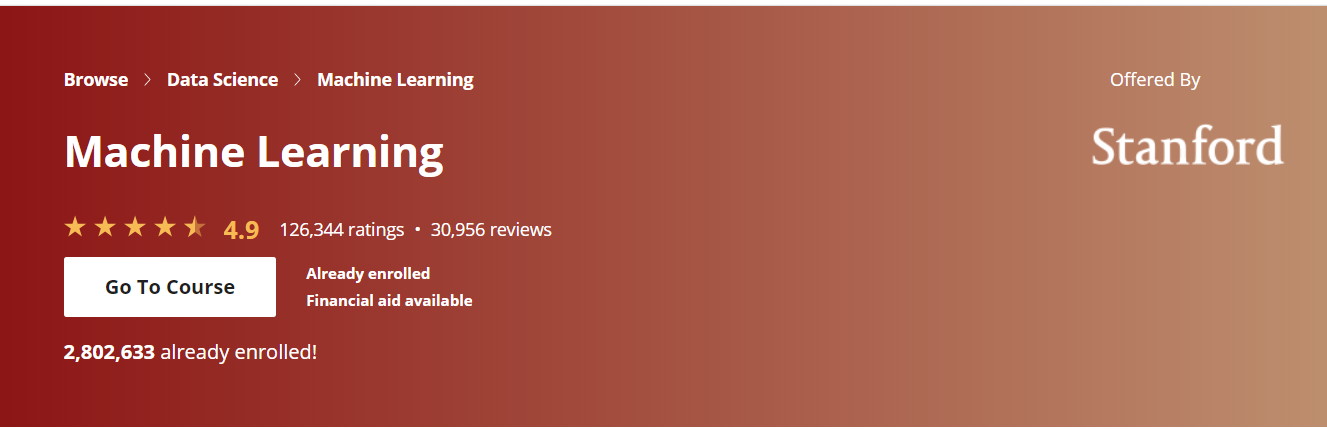 这个就是吴恩达最火爆的课程,在网易云课堂(现在没了),B站都可以找到含中文字幕的资源,不需要跟着做题以及证书的可直接看。也可以在coursera上直接旁听,或者申请助学金(就是免费上而且啥都有,申请很简单就是需要两周才能通过),