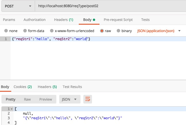 public List postMethod2(String reqStr1, @RequestBody String reqStr2) {