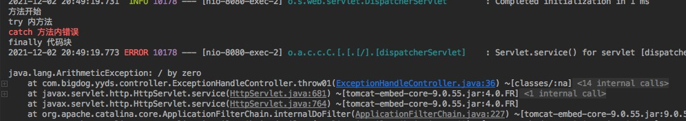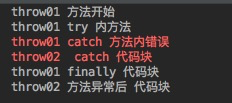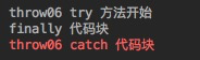 3.2、 调用 throw02 方法则正常, finally 代码块的执行顺序可能在catch之前,之后,或者外部的catch 之前, 总之是保证一定能执行,但时间不定