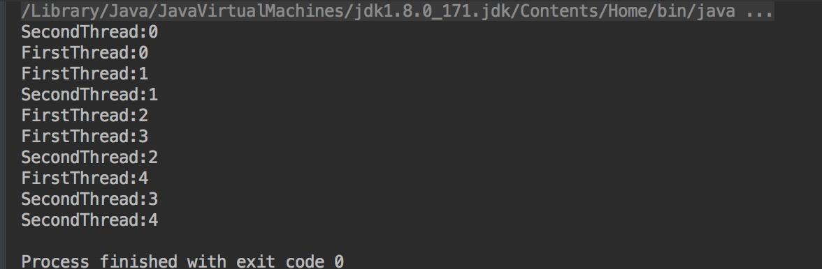 package com.bigdog.yyds.Service; public class YieldDemo implements Runnable{ @Override public void run() { try{ Thread.sleep(100); }catch (Exception e) { e.printStackTrace(); } for(int i=0;i<5;i++) { System.out.println(Thread.currentThread().getName() + ":" + i); Thread.yield(); } } public static void main(String[] args) { YieldDemo runn = new YieldDemo(); Thread t1 = new Thread(runn, "FirstThread"); Thread t2 = new Thread(runn, "SecondThread"); t1.start(); t2.start(); } }