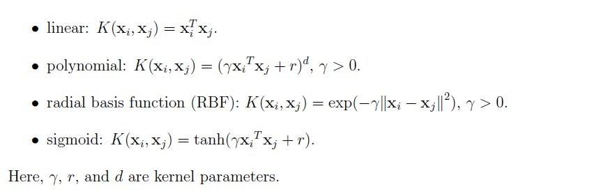 常用的四种核函数对应的公式如下: