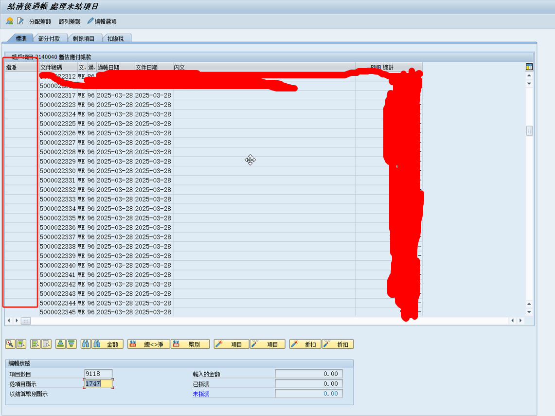 暂估应付账款手工清账这里指派显示采购文件号