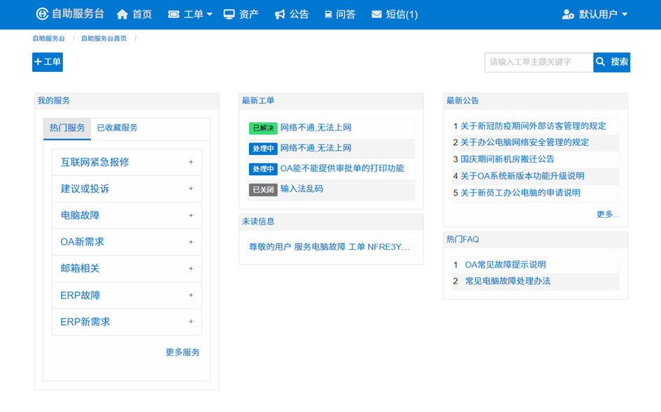 患者和医护人员可通过自助服务门户查询公告、FAQ、热门服务目录,甚至通过关键字搜索获取实时运维资讯。这种“淘宝式”交互设计,让信息获取更直观,减轻了服务台压力