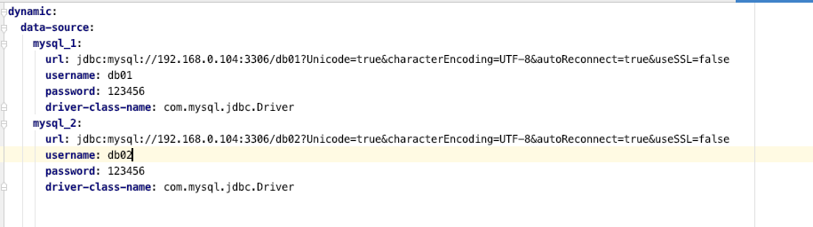 打印数据源信息DataSourceProperties(userName=db02, password=123456, driverClassName=com.mysql.jdbc.Driver, url=jdbc:mysql://192.168.0.104:3306/db02?Unicode=true&characterEncoding=UTF-8&autoReconnect=true&useSSL=false)