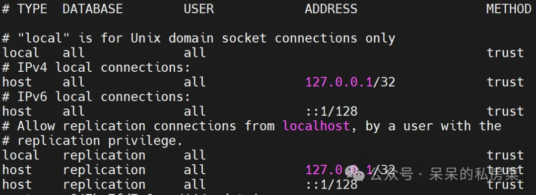 | METHOD | trust:免密认证,无需密码直接登录 |