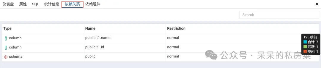 统计信息:查看数据库统计信息,包含事务ID,元组信息等