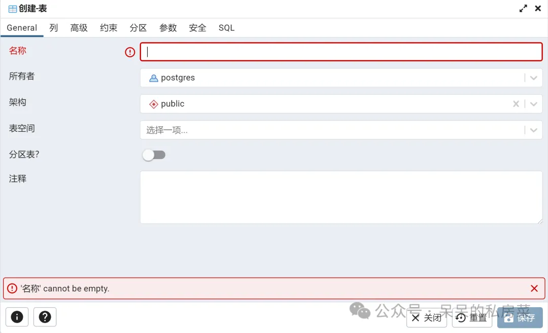 创建表:根据实际需要配置表名、字段、约束、分区等