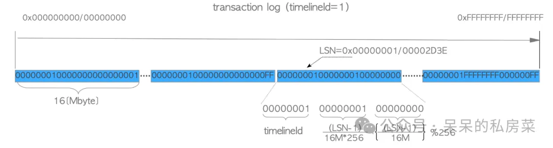 每个xlog文件,大小为4G(16*256),由256个segment组成;