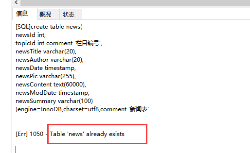 (1)创建数据库newsdb,确保该库存在;