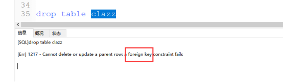 删除被引用的表时提示外键约束限制,需要先删除引用的表,再删除被引用的表