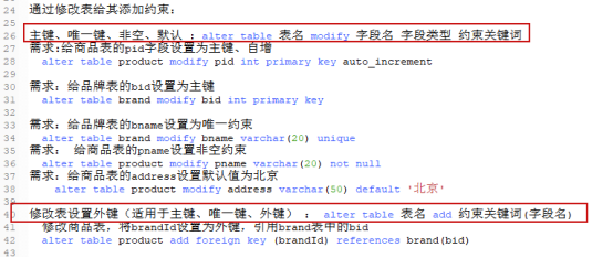删除非空、默认: Alter table 表名 modify 字段名 类型 【保留需要的约束】