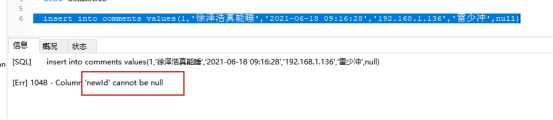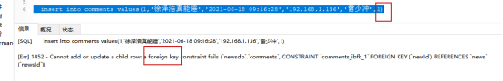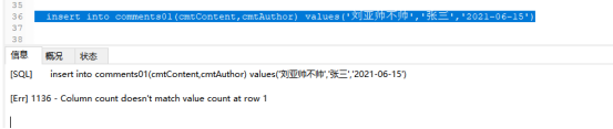 一定要注意:添加数据时,值列表和字段列表一一对应