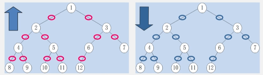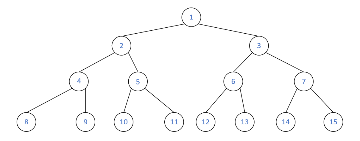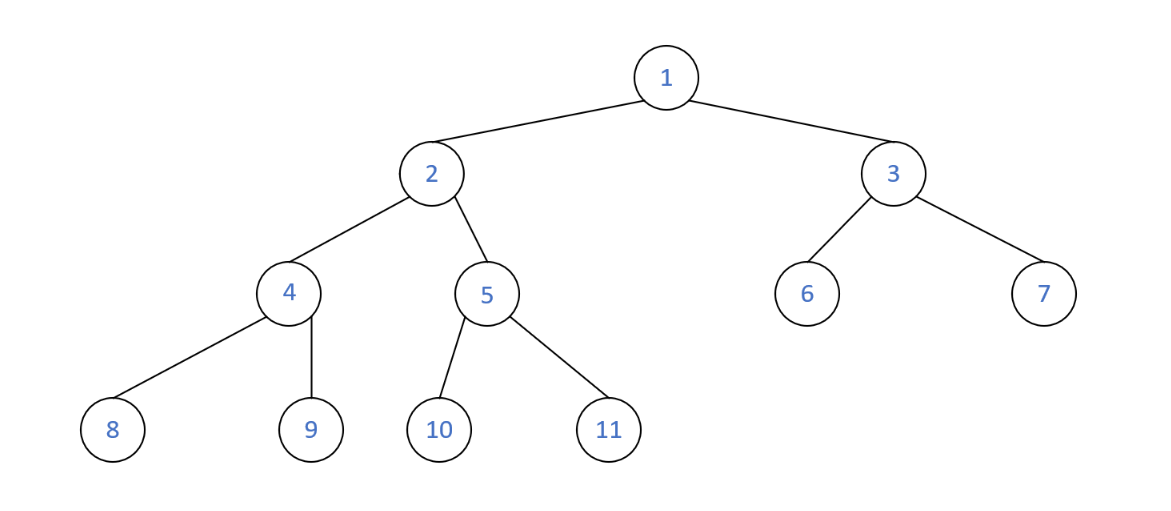 如果 i = 1,则结点 i 是二叉树的根,如果 i > 1,则其双亲是结点\(\lfloor i/2 \rfloor\)