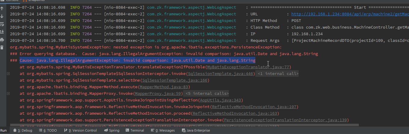 记一次前后端交互,传递时间参数的异常--java.lang.IllegalArgumentException: invalid comparison: java.util.Date and java.