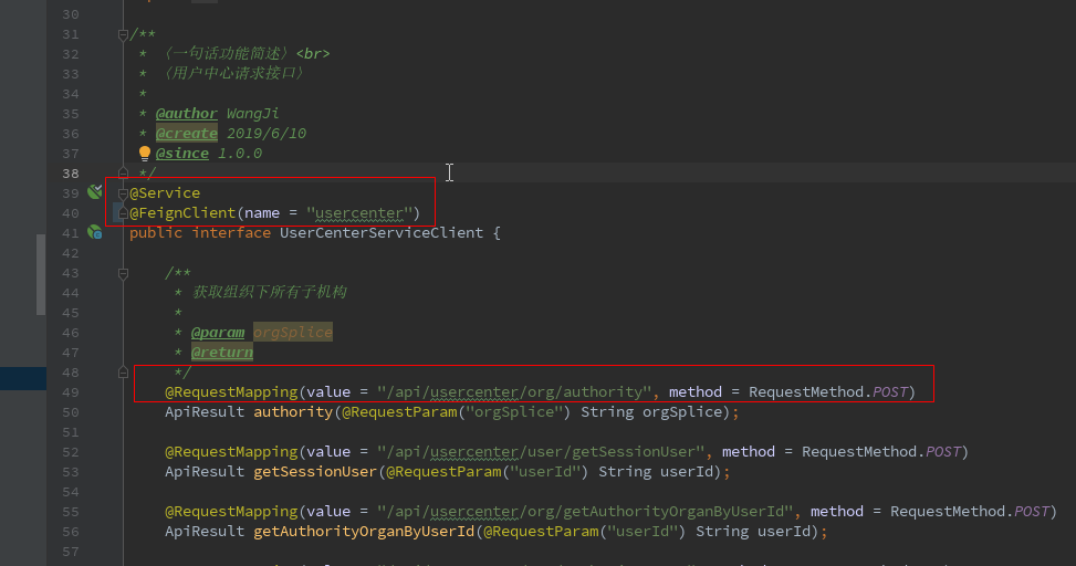访问微服务内部中的接口@FeignClient(name= 微服务名称)