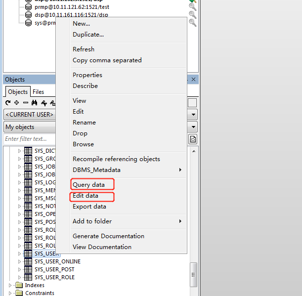 选择数据表,点击右键,可以对表进行结构查看、编辑、数据编辑等操作