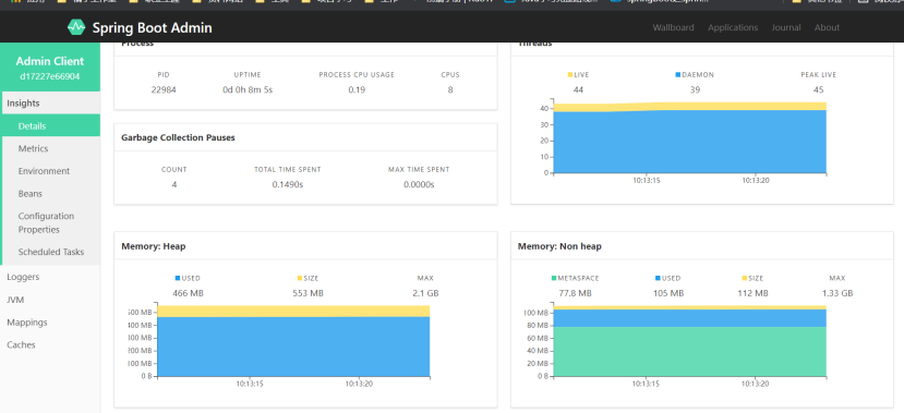 启动 Client 端,Admin 服务端会自动检查到客户端的变化,并展示其应用