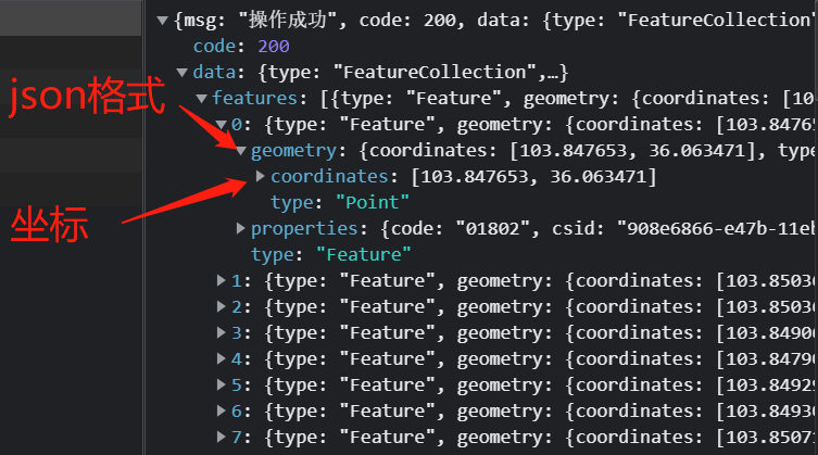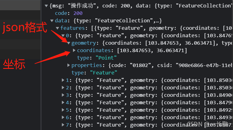 - 前端拿到数据进行渲染展示,根据 code 上图标