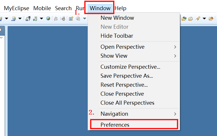 在 MyEclipse 里面打开 Window 下面的 preferences