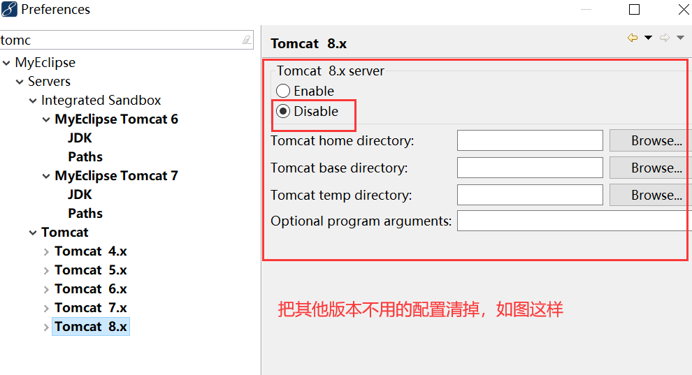左上栏搜索 Tomcat ,先清除其他版本配置信息,再把下载的 Tomcat 配好,如下两图