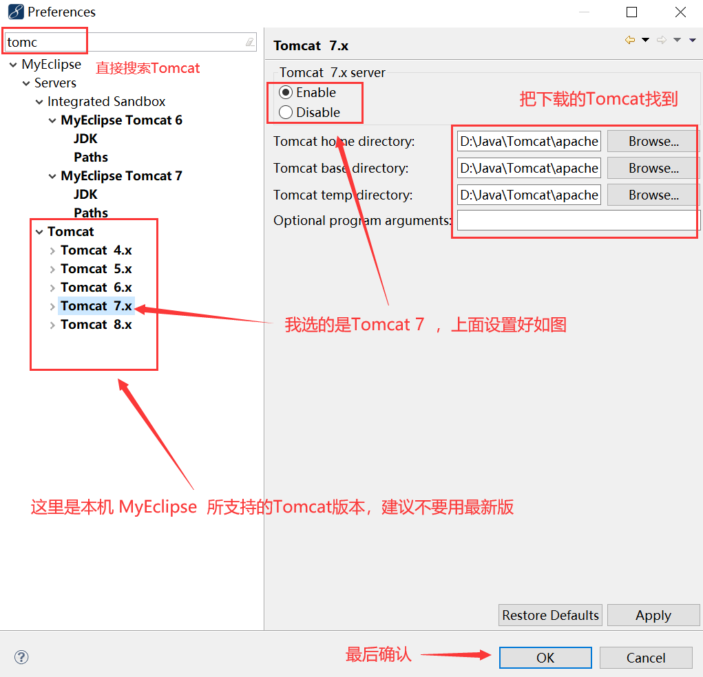 本文配置的环境是 Windows 10 ,Tomcat 7.0 ,内容包括:下载 Tomcat 并在电脑上配置环境、将 Tomcat 服务器 配在MyEclipse 上面、把自己的 web 项目 搭建在Tomcat 服务器上面,总共三部分,