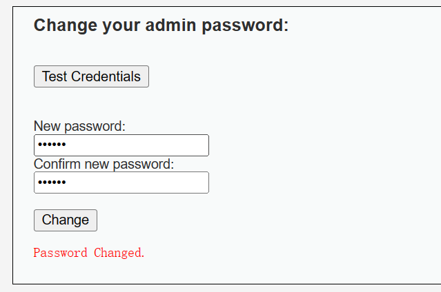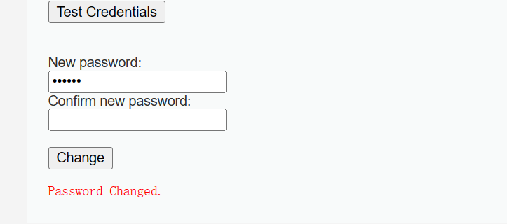 源码分析:源码中只对传入的密码和确认密码进行比较,两者一致则执行更改密码命令成功返回Password Change,不一致则返回Passwords did not match,没有任何过滤,所以能轻易执行csrf漏洞