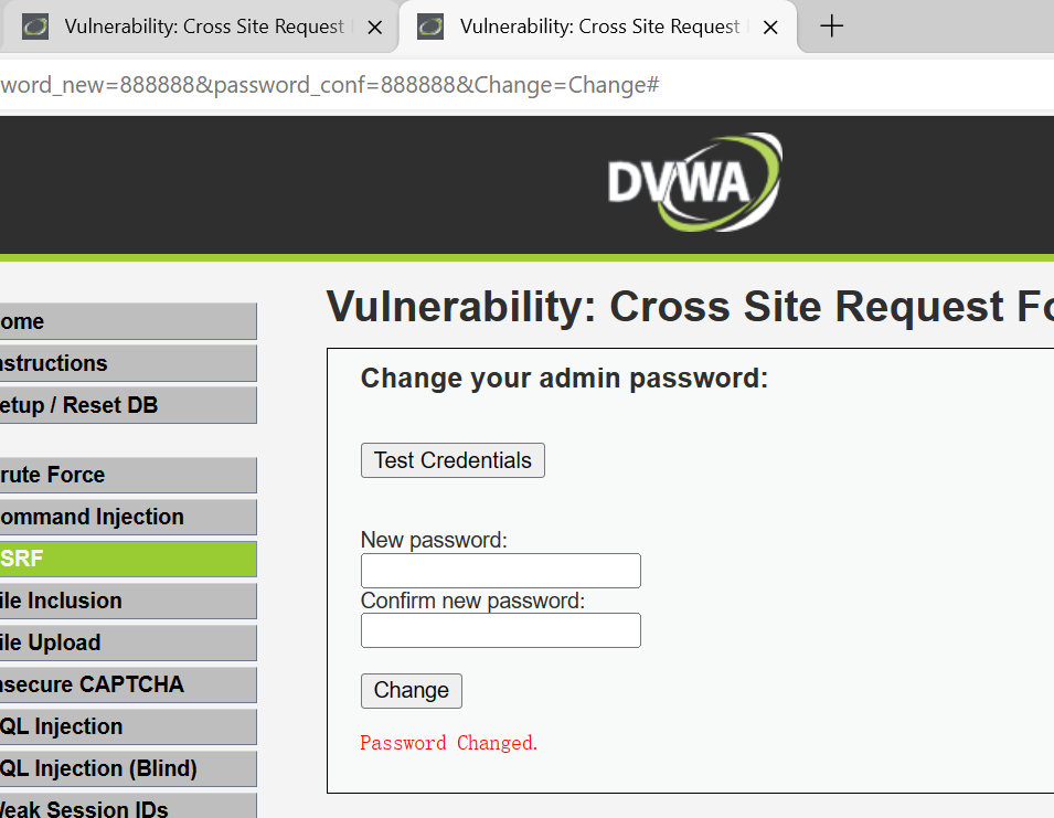 http://127.0.0.1/dvwa/vulnerabilities/csrf/?password_new=888888&password_conf=888888&Change=Change#