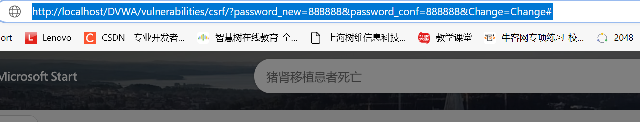 页面跳转到了dvwa的更改密码界面,csrf攻击成功