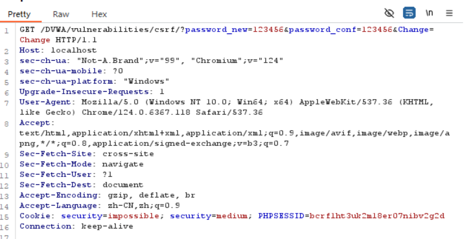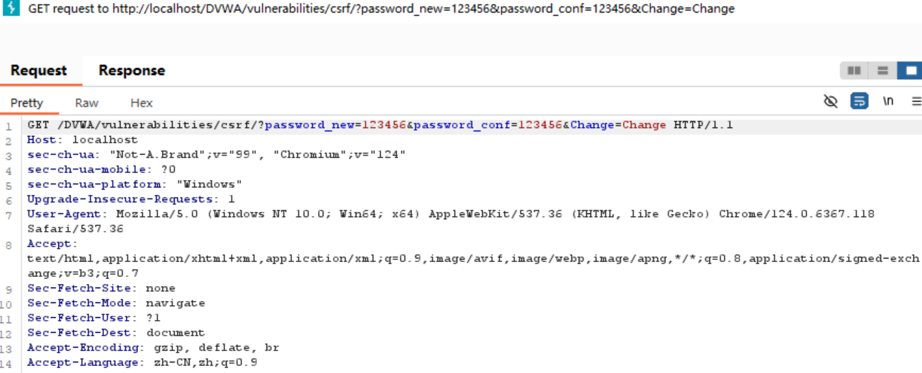 http://127.0.0.1/dvwa/vulnerabilities/csrf/?password_new=123456&password_conf=123456&Change=Change#