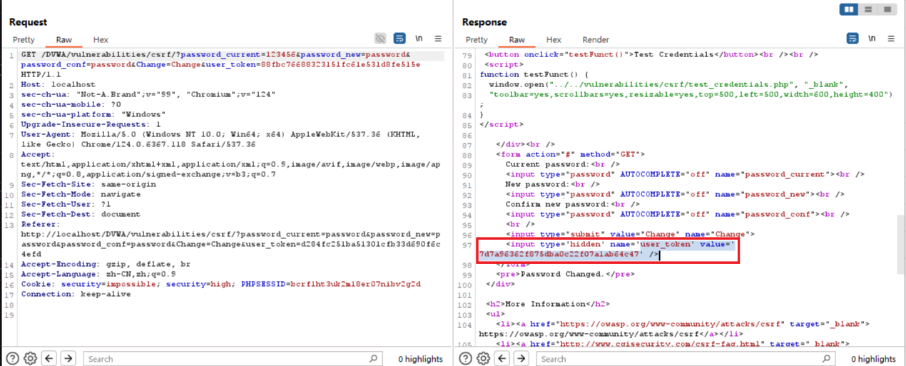 http://169.254.206.217/DVWA/vulnerabilities/csrf/?password_new=password&password_conf= password&Change=Change&user_token=7d7a96362f875dba0c22f07a1ab64c47#