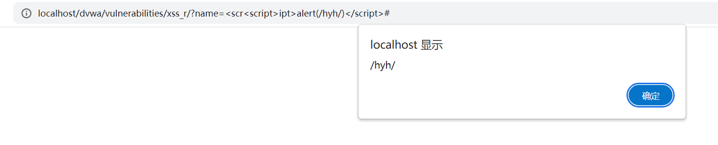 3.传入构造代码<scr<script>ipt>alert(/hyh/)</script>