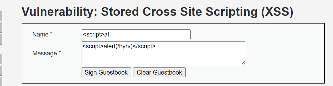 2.输入xss代码<script>alert(/hyh/)</script>