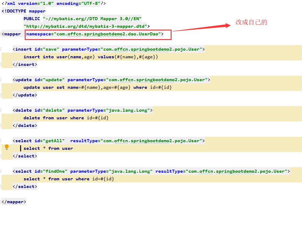 5,在resources/mapper目录下创建mybatis mapper映射文件UserDao.xml